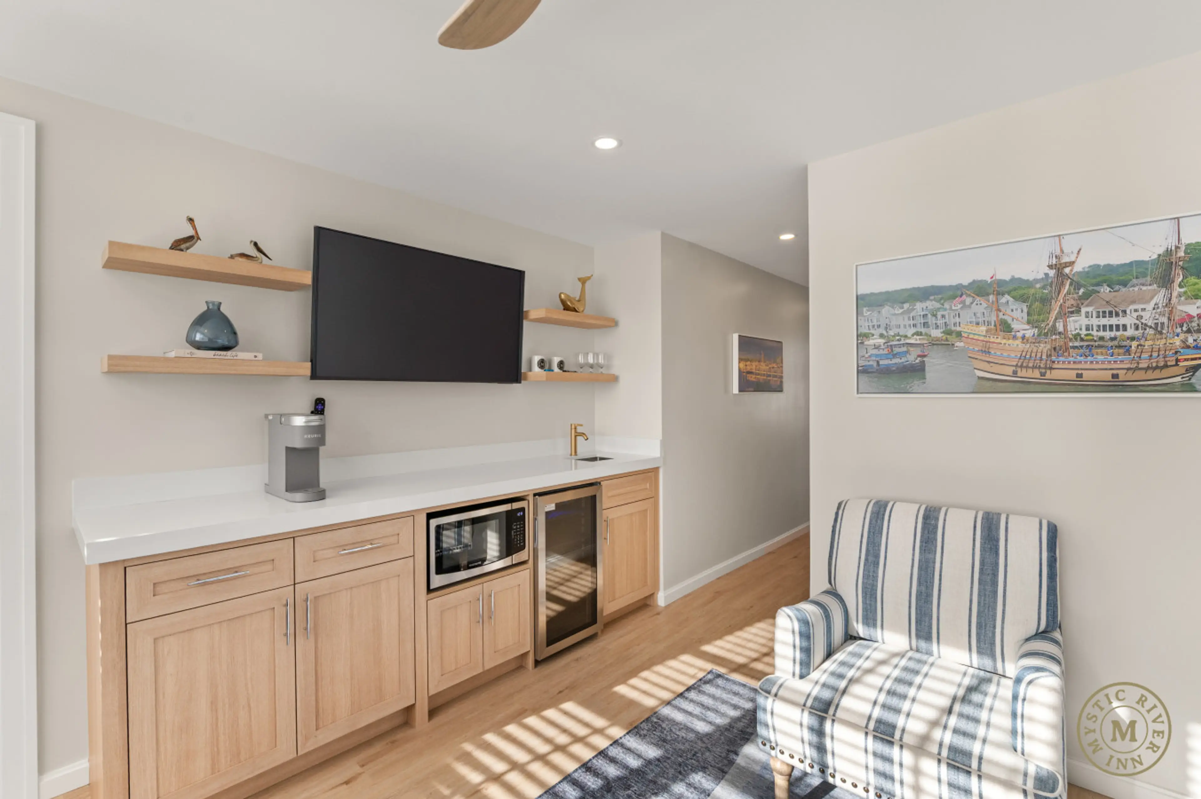 Waterfront Views · Steps to Downtown · Sleeps up to 4 Where Historic Charm Meets Modern Indulgence. Immerse yourself in the heart of Mystic with a stay in the Riverside Grand Suite (101). Ideally positioned on the ground floor of the prestigious Mystic River Inn, this suite offers a rare connectio...