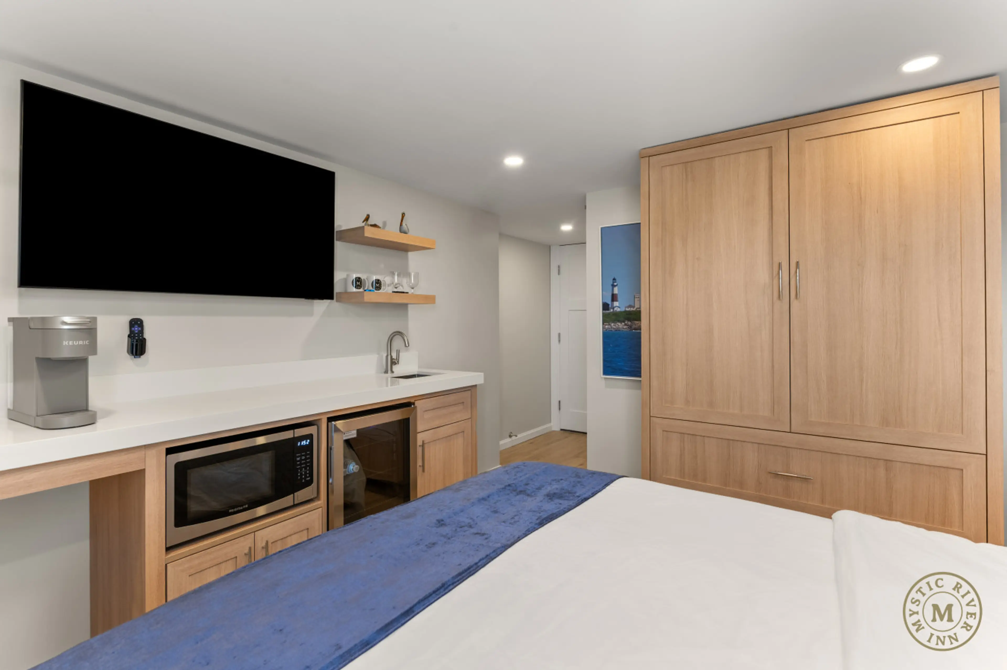 A Beacon of Luxury. Direct Waterfront Views. The Ultimate Couples’ Perch. Rise above the harbor in The Lighthouse. True to its name, this luminous second-floor retreat serves as your private beacon over the Mystic River. Located within the historic 1809 Mystic River Inn, this unit offers the most c...